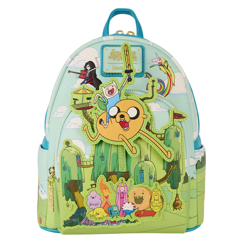 This exclusive mini backpack features all of your favorite characters from Adventure Time. Front and center are Finn and Jake, and you can move them up and down within the scene! More familiar characters hang out on the side pockets.