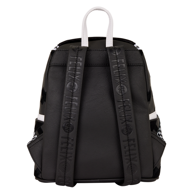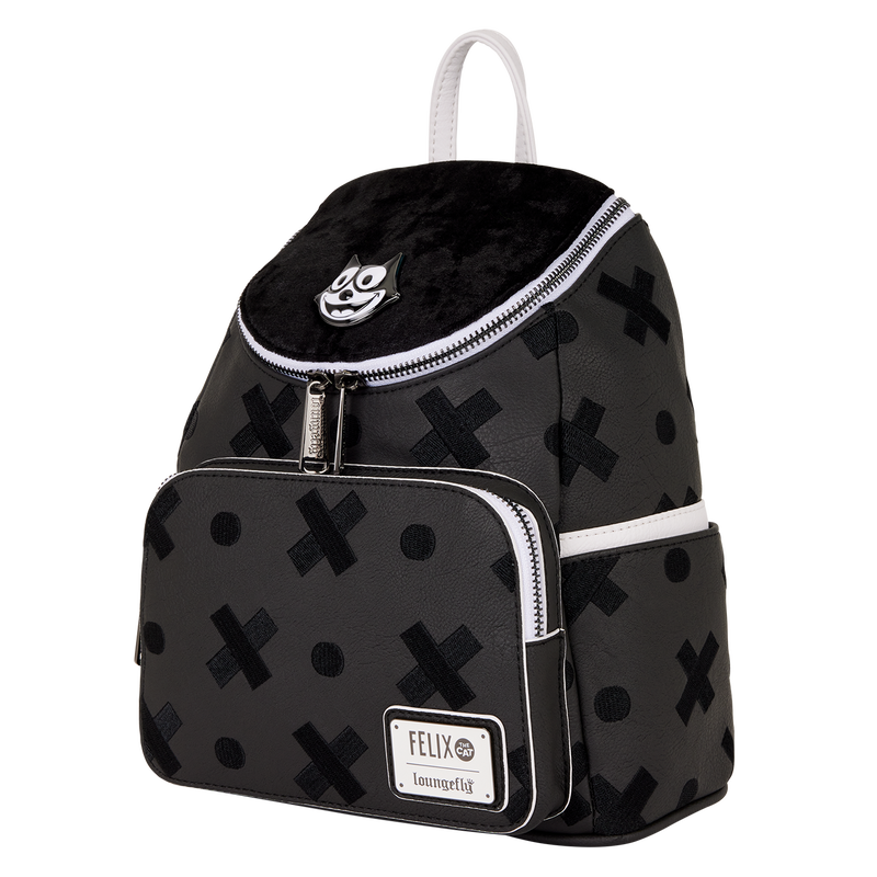 This mini backpack pays tribute to Felix the Cat! You’ll find a molded metal charm of Felix on the top flap of the bag. X’s and polka dots are debossed all over the rest of the bag. “Felix” is embossed along the straps.