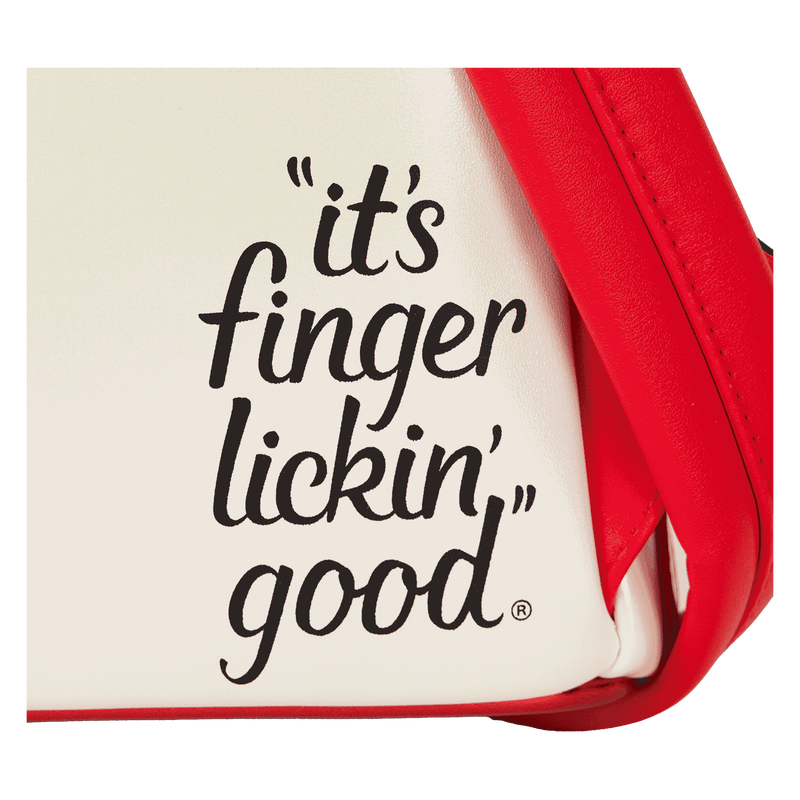 A deliciously stylish bag! This KFC mini backpack is truly iconic and ready to make a statement. The classic KFC bucket is portrayed on the bag in sherpa, embroidered, and pearlescent detail. You’ll find plush wings sitting within the front pocket “bucket.” Turn the bag around to find the tagline, “It’s finger lickin’ good” written on the back. Take your KFC love to next level – every KFC fan needs a statement bag like this!