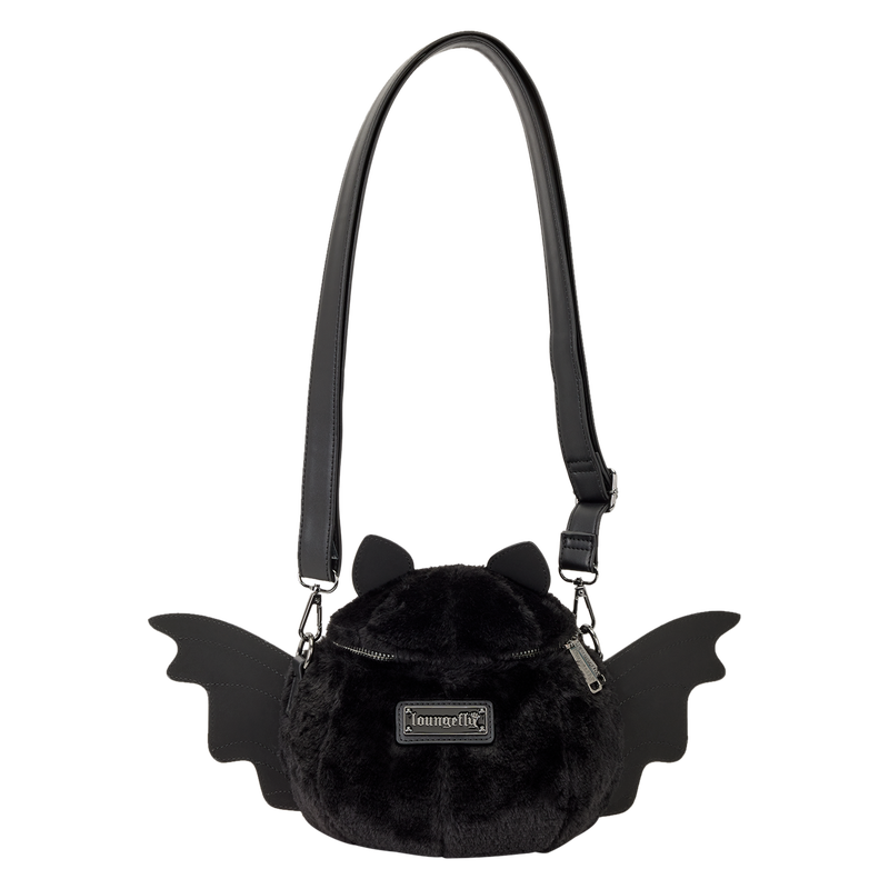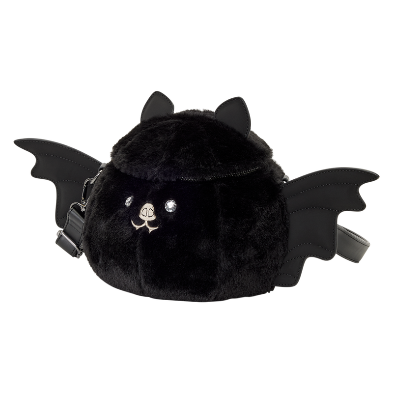 This adorable bat crossbody features plush, faux suede, and embroidered details. Its eyes are real gems! 3D wings stick out from the sides and ears stick out from the top. It’s the perfect spooky season statement piece!