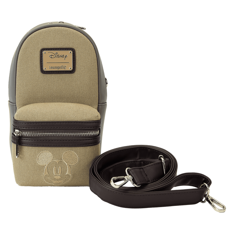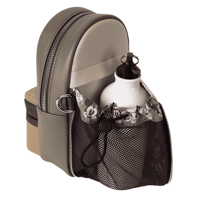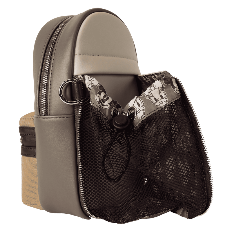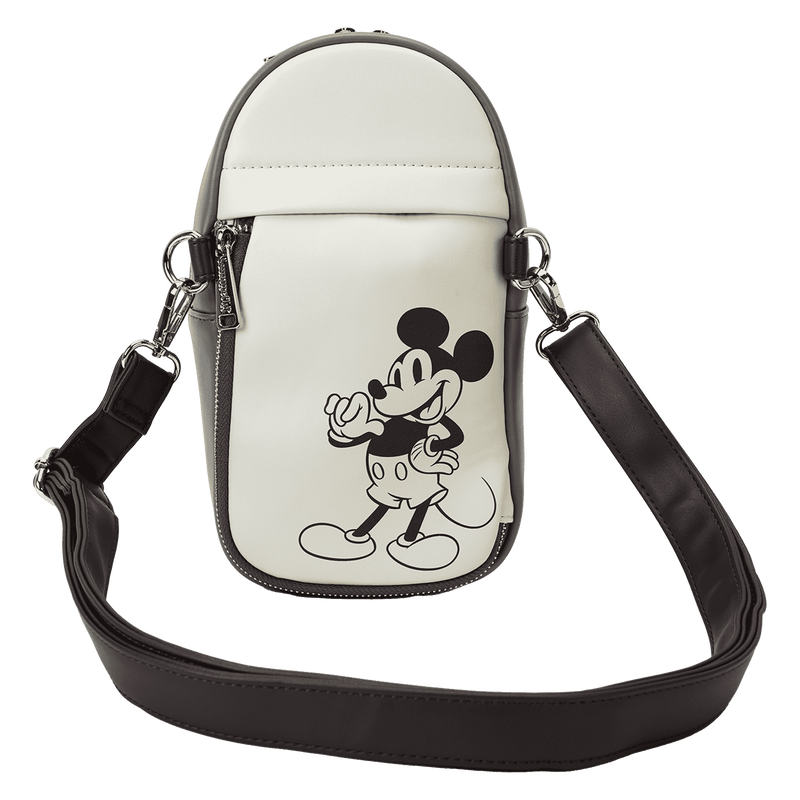 Take those best pal vibes with you wherever you go. This crossbody bag of Disney’s Mickey Mouse and Friends sure is swell! And it’s great for carrying a water bottle and other necessities. A detachable and adjustable strap offers hands-free convenience on the go. A pocket on the canvas-trim front features the face of Disney’s Mickey Mouse in shiny gold embroidered thread. Flip the bag around, and you’ll find a classic black-and-white print of Mickey. Store just what you need to take off on fun-filled adventures in style.