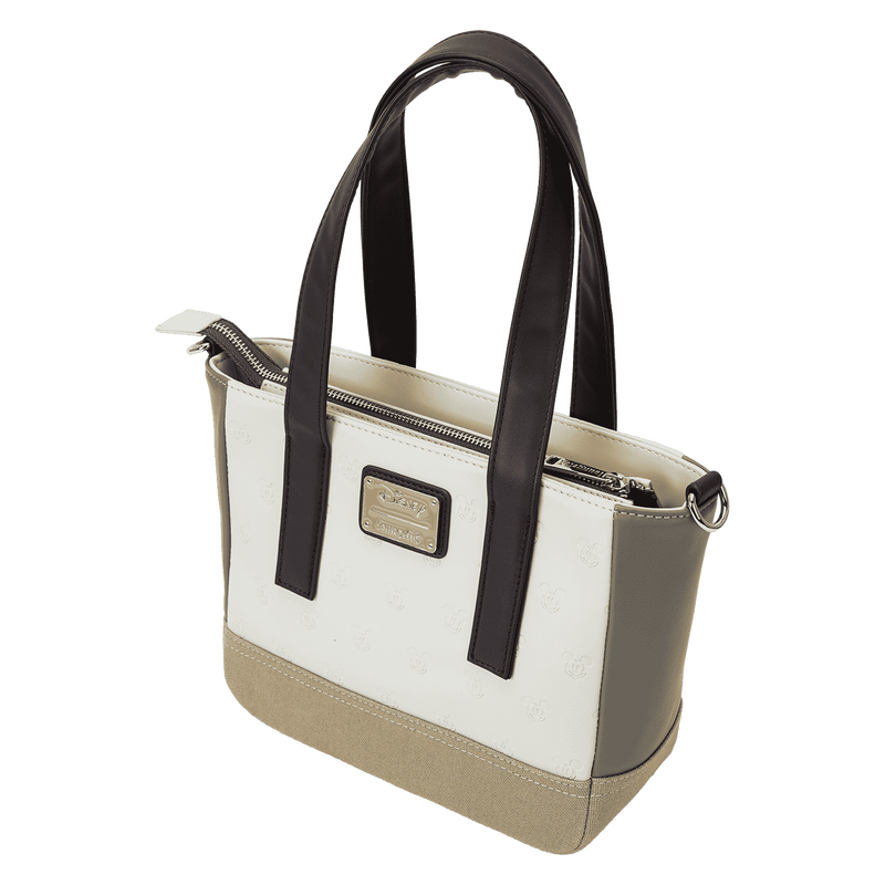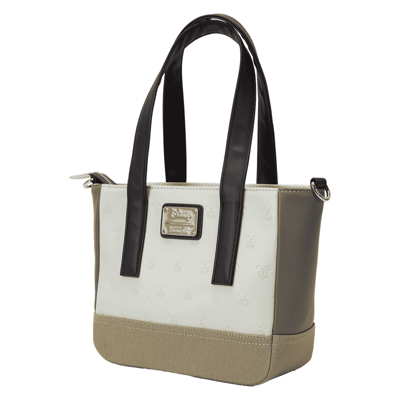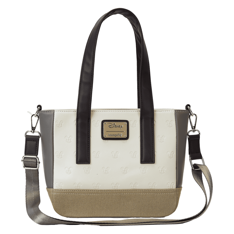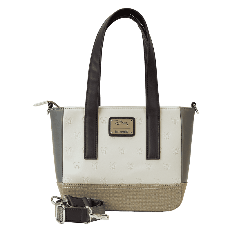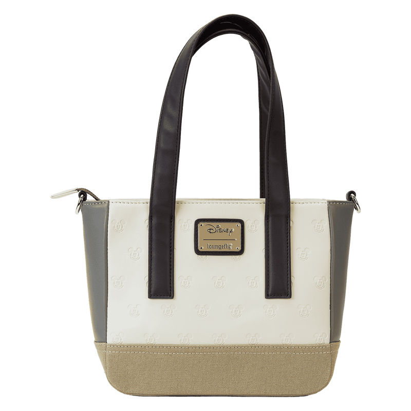 Take those best pal vibes with you wherever you go. This tote bag of Disney’s Mickey Mouse and Friends sure is swell! A debossed pattern featuring the face of Disney’s Mickey Mouse adds a touch of character. Canvas trim and neutral colors create an elevated nod to your favorite fandom. This roomy tote is perfect for storing just what you need to take off on adventures in style.