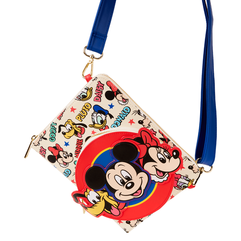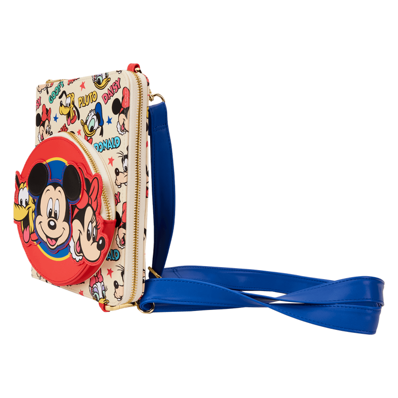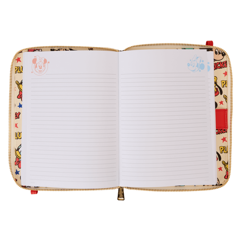 Open the curtains and start the show! Bring star power wherever you go. Take along our Disney’s Mickey Mouse and Friends crossbody bag journal. Make all kinds of plans—or start your next screenplay—with a bold and vivid journal that’s versatile and hands-free when inspiration strikes. Front and center, a circular applique puts Disney’s Mickey Mouse, Minnie Mouse, and Pluto in the “spotlight.” Behind them, vivid prints of these characters, along with Disney’s Donald Duck, Daisy Duck, and Goofy appear with their names against a cream-colored background. This background extends to the back cover as well. The circular applique on the front also doubles as an extra zippered compartment for storing pens, sticky pads, erasers, or other daily essentials. Inside, you’ll find 150 sheets of lined paper with original artwork. Capture all the star-studded adventures along the way and keep them close.