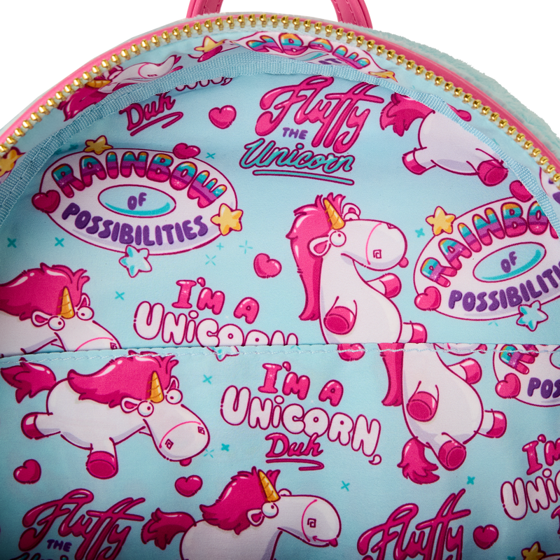 This exclusive mini backpack features a minion dressed up as a unicorn, complete with faux fur, plush material, and a 3D unicorn horn! There’s even a detachable faux fur tail!