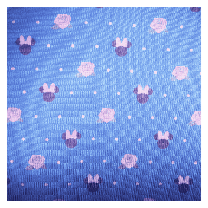 Fashion is in full bloom with this Disney’s Minnie Mouse mini backpack. Minnie flourishes in style on the front of this circular-shaped accessory. She appears as an applique, all dressed up and holding a small bouquet of flowers. Embroidered roses surround her, and vintage lace details in pink and white make concentric circles to frame the scene. Pack your daily essentials, take off on an adventure, and watch the fun blossom.
