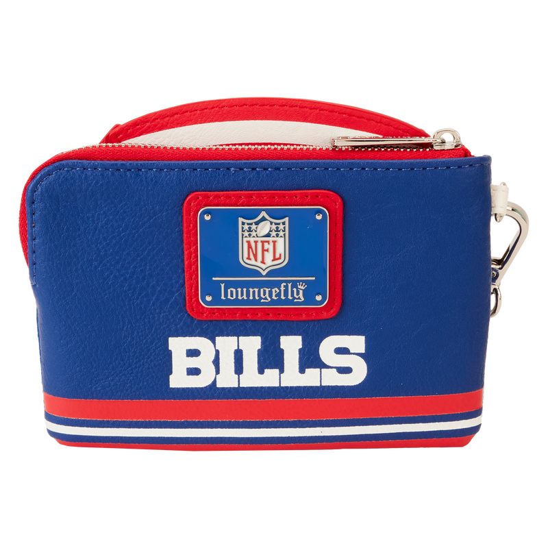 Clap and cheer with your favorite team gear! Stand out from the crowd with our Buffalo Bills Varsity Wristlet Wallet. This handy wallet, fashioned as a varsity jacket, scores big points in details. An embroidered patch logo and helmet patch add a winning look–along with red, white, and blue appliques, including some with jersey material. Real metal snaps also line the front for a “buttoned-up” look. Secure your valuables for the day and show off your team pride.