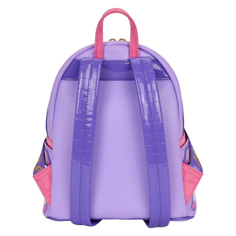 This bag looks like a storefront, complete with striped awning and windows through which you can see some of Hello Kitty’s friends, including Cinnamoroll, My Melody, Tuxedo Sam, Pompompurin, Keroppi, and Kuromi! This bag comes with an exclusive Scented Hello Kitty Funko POP!, which fits within the bag so it looks like Hello Kitty is standing in the store! Patent faux leather, embroidery, and embossed details bring the whole look together.