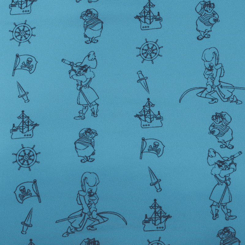 This crossbody bag celebrates Disney’s Peter Pan. The top flap shows Captain Hook’s pirate ship sailing on the ocean. The rest of the bag features Peter Pan, Captain Hook, and Mr. Smee surrounded by illustrations of pirate ships, Jolly Roger flags, and ship wheels.