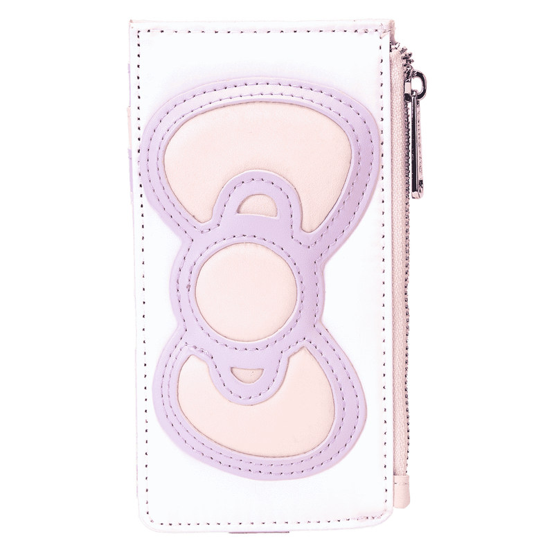 Say hello to the friend of all friends in style! Take along this exclusive Hello Kitty™ card holder, which features a super-cute, padded applique bow in purple and pink. Secure coins in the zippered compartment and cards, tickets, keycards, or your ID in the slots on the back. Then, gather your friends and share smiles wherever you go.