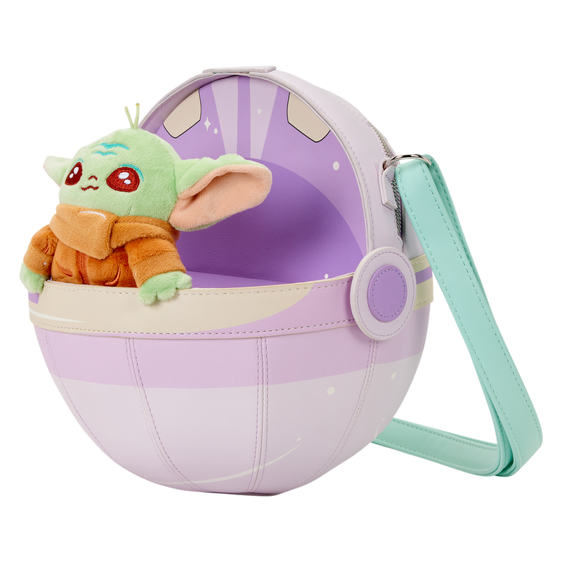 This crossbody bag is in the shape of Grogu’s pod, and a stuffed plush of Grogu is inside! At the back of the pod is a zipper where you can store your essentials within. It makes a statement and is a fun way to show off your love for Grogu and Star Wars!