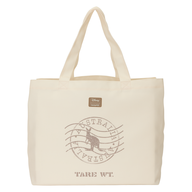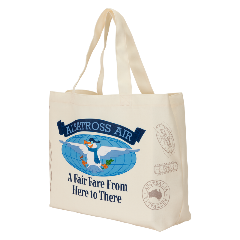 This canvas tote bag pays homage to Disney’s Rescuers Down Under and features the Albatross Air logo. You’ll find an Albatross symbol in front of a globe. Above is a banner that reads, “Albatross Air” and below it says, “A Fair Fare from Here to There.” Along the side you’ll see “Express” and other symbols “stamped” on the bag. Turn it around to find another Australia “stamp.”