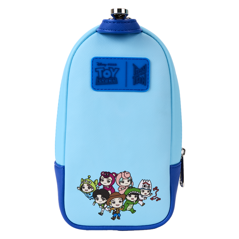 Ready to play up your look, BTS fans? This TinyTAN BTS pencil holder features the band members dressed as characters from Disney Pixar’s Toy Story. Keep everything you need handy for when inspiration strikes. On the front, you’ll find printed images of the following band members: RM dressed as Disney Pixar’s Woody, Jin as the Alien, Suga as Hamm, j-hope dressed as Forky, Jimin as Rex, V dressed as Lotso, and Jung Kook as Buzz Lightyear. Color-blocking panels behind each band member–and debossed images of accessories associated with each Disney Pixar character–add extra-fun details