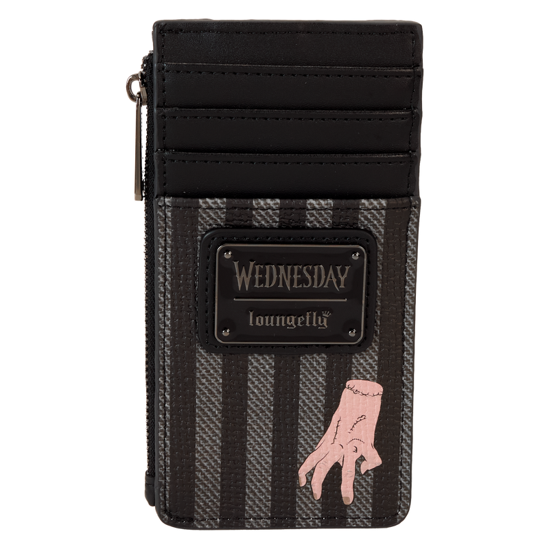 Snap, snap… the perfect outfit is waiting. Enter the gates of Nevermore Academy with a card holder inspired by the school’s most notorious student. Don’t forget to wave to Thing as he appears on the back! This accessory makes a grim addition to any outing and will keep your belongings safe through any undertaking.