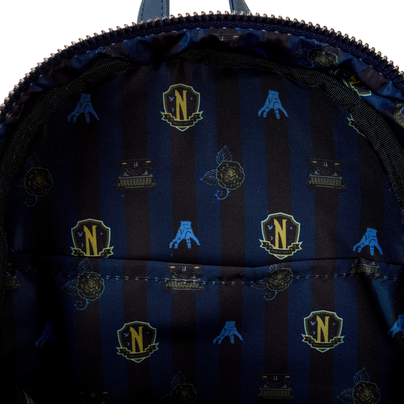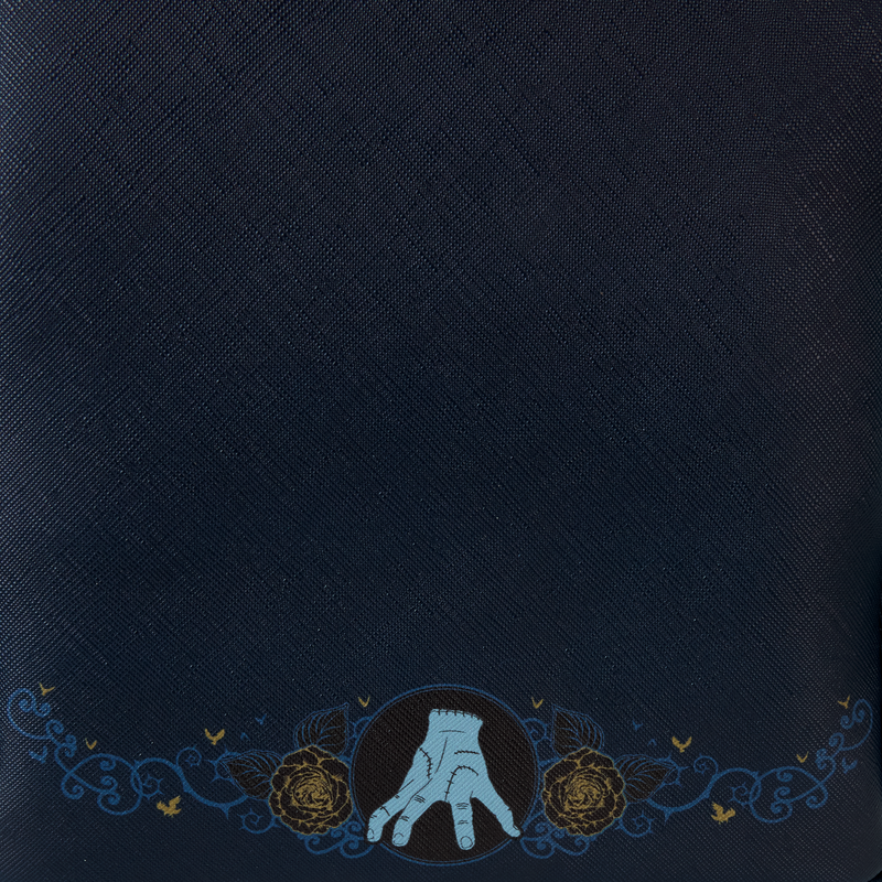 Back to school already… how perfectly dreadful. Join Wednesday Addams as she returns to Nevermore Academy for another macabre mystery. Dare to turn down the lights, and you’ll reveal the bag’s ghostly glow-in-the-dark details! This accessory makes a fashionable addition to any outfit and will keep your belongings safe through any undertaking.