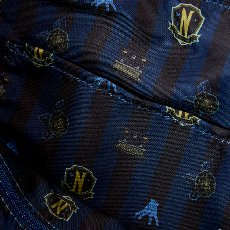 A typewriter on the go? What a novel idea. Taking the shape of Wednesday’s writing machine, this crossbody bag has embossed and foil details to highlight the mechanics. You’ll even find Thing nearby, poised to jump in for a word or two. Whether you’re typing up ghost stories or documenting your latest case, this accessory will keep you poised for any undertaking.